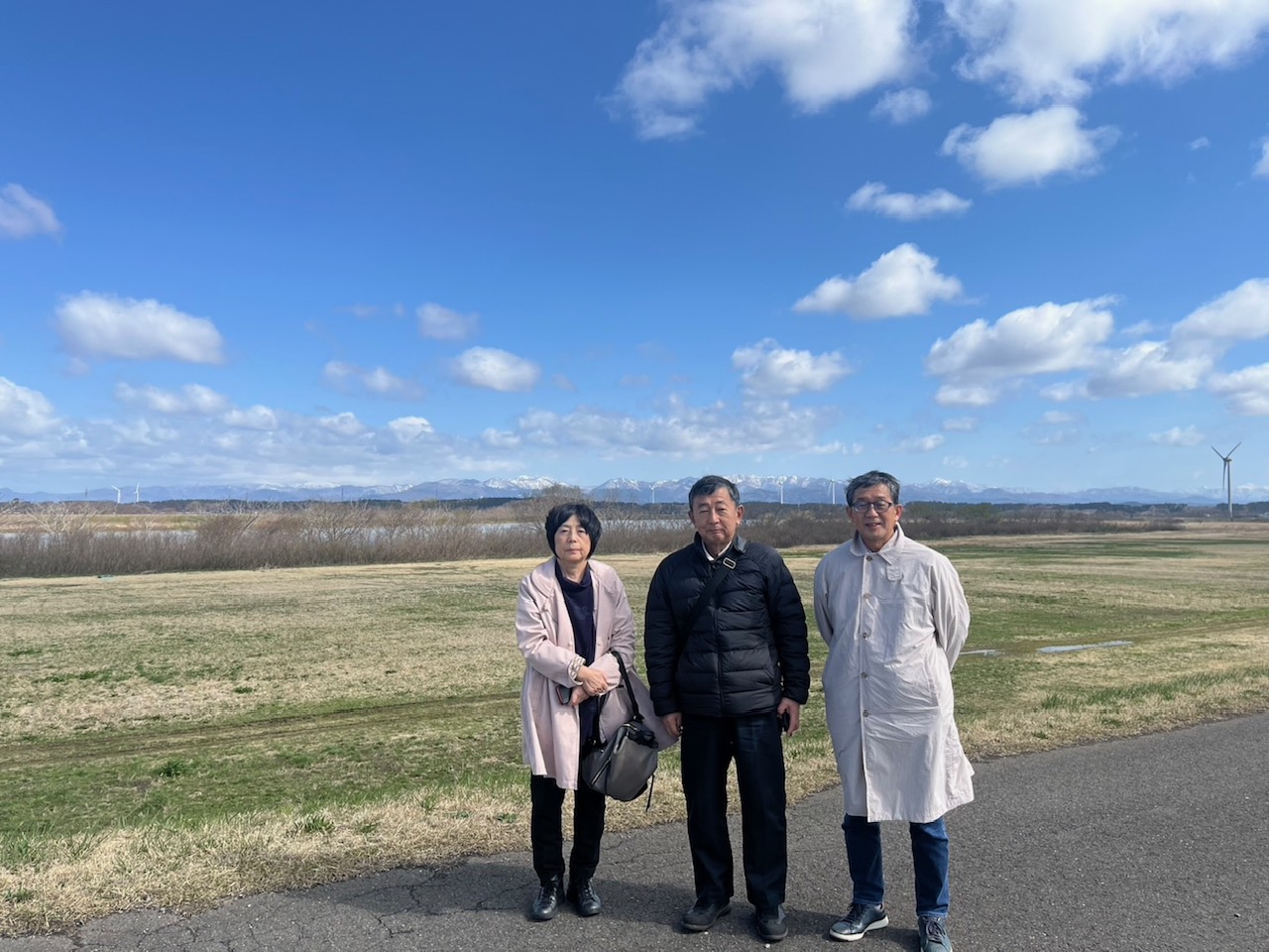 アイキャッチ画像の2枚目は、子供の頃に筏(いかだ)に乗って遊んだ、米代川の河川敷から冠雪の白神山地を背景に撮影したものです。3枚の写真を見て、友人で料理研究家の山本朝子先生が、わが弟のために短歌を詠んでくださいました。